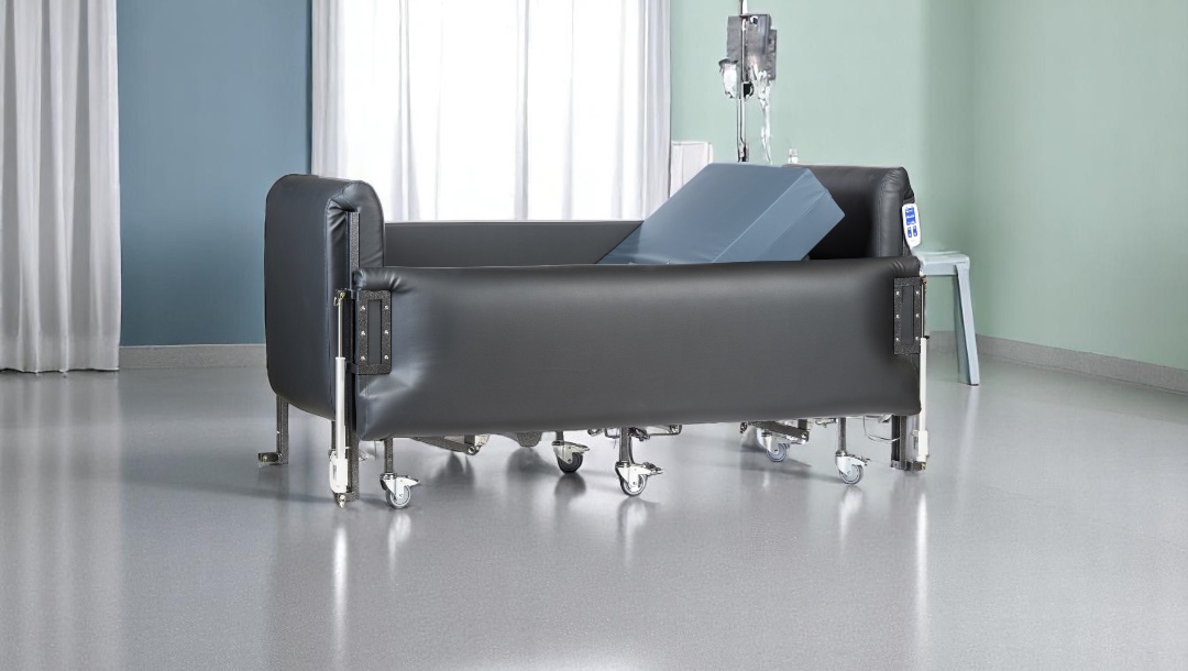 For clients with more advanced pressure care needs, the bed can also be customised to include a modified mattress surround that accommodates an alternating air mattress. This allows for tailored clinical support while maintaining the protective features of the Novaprotect design.