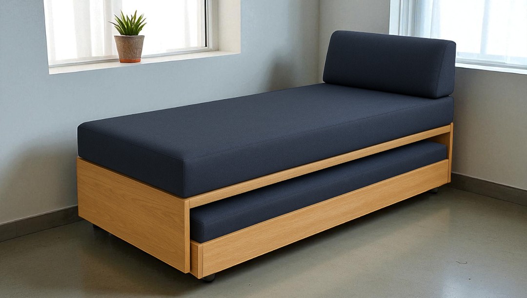 Perfect for overnight stays or shared care spaces, the Day Bed with Trundle features a pull-out secondary mattress on a hidden steel frame. The trundle slides out easily when needed and tucks away neatly when not in use, maximising floor space. This dual-sleeping option is ideal for clinics, respite rooms or any setting where flexibility is essential.